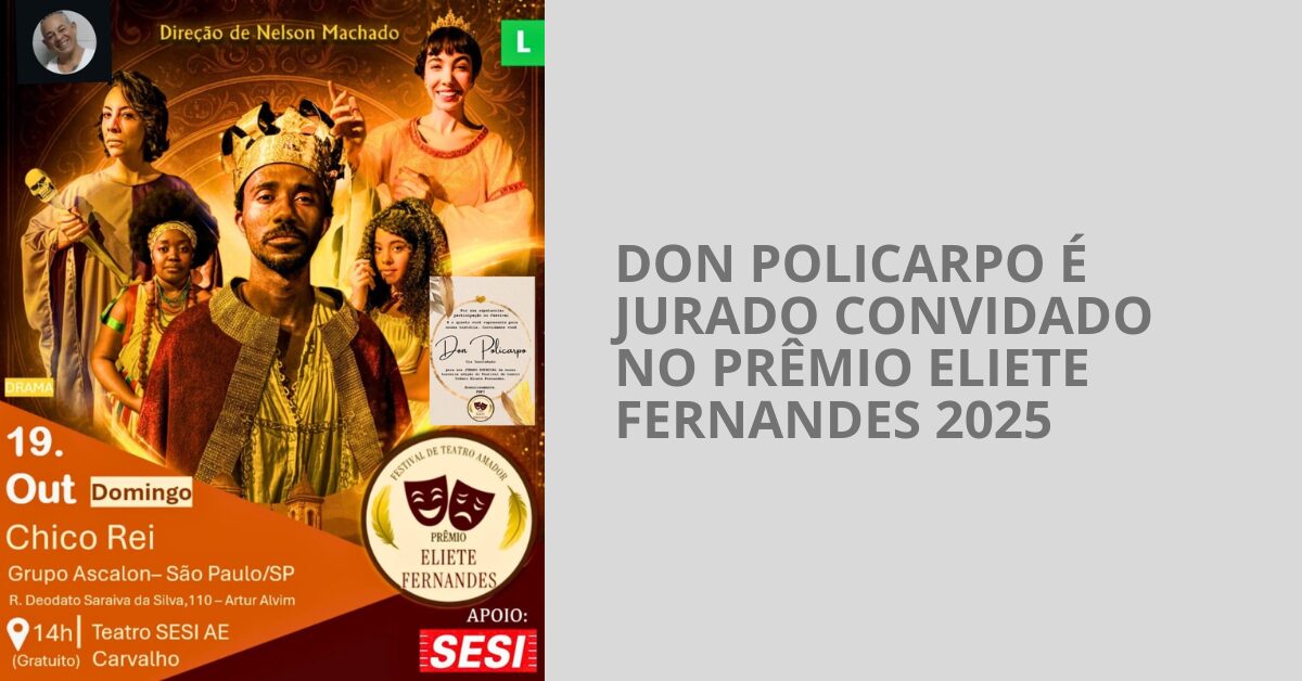 Reconhecido por sua atuação no cenário teatral, Don Policarpo foi convidado como jurado especial em homenagem à sua trajetória marcante dentro do festival e à sua contribuição artística e intelectual. O artista integrou o evento após ter se destacado anteriormente com o espetáculo “Dois Reis”, vencedor do prêmio de Melhor Roteiro Original, peça que abordou com sensibilidade e profundidade temas históricos e culturais de grande relevância.